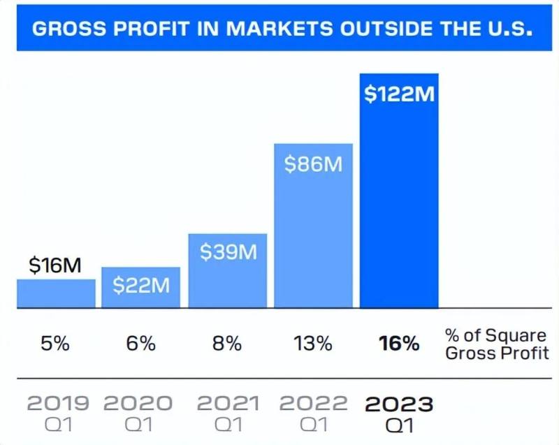 另外,Square在海外地区的扩展一直是公司的重点战略,到今年一季度海外实习的毛利润达到1.2亿,同比增长了近42%,占Square整体毛利的16%。可见海外业务的扩展有能力贡献可观的利润增长。