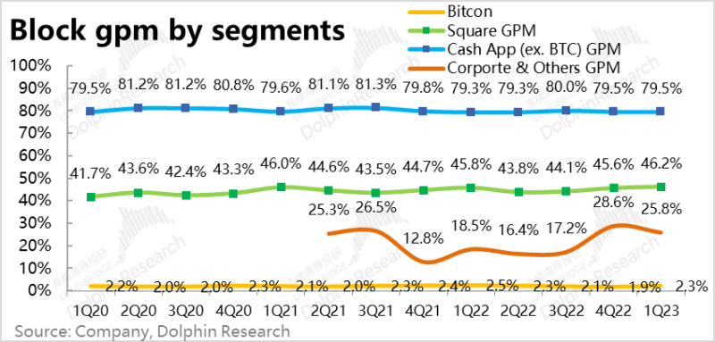 2、剔除比特币业务后,Cash App板块实现毛利润8.8亿美元,高于市场预期的8.4亿。本季Cash App(ex. BTC)实际毛利率为79.5%,环比持平。