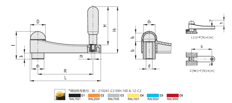 Elesa+Ganter曲柄摇手符合人体工程学,高科技聚合体材料,盖帽颜色可选,通常应用于转速不快,所需力矩较大的场合。