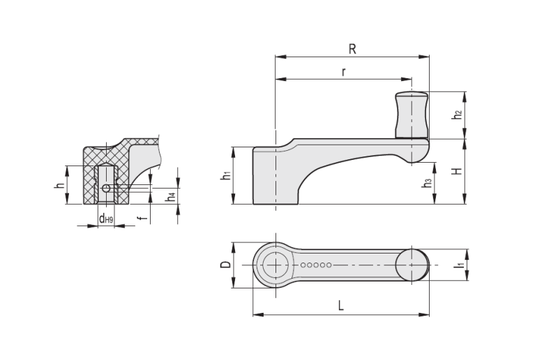 黑色氧化处理钢毂, H7铰孔,旋转手柄 I.621+x- 由高科技聚合体制成。