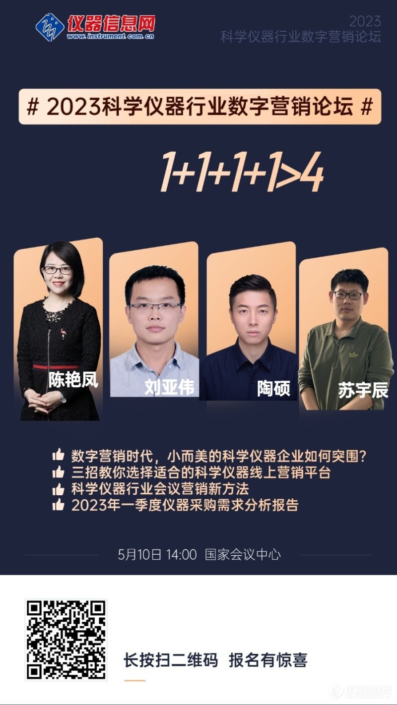 本次论坛将围绕小而美的科学仪器企业如何在通过数字营销突围、会议营销新方法、如何挑选科学仪器线上营销平台等热点主题展开讨论,同时将分享2023Q1仪器采购的需求。