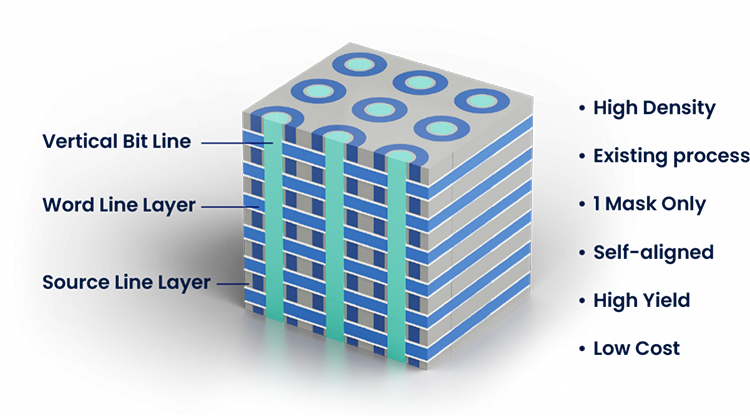 NEO是一家存储芯片技术公司,这次推出的3DX-DRAM号称全球首款类3D NAND的内存技术,将内存带入3D时代。其技术思路跟3D NAND闪存类似,通过堆栈层数来提高内存容量,类似闪存芯片中的FBC浮栅极技术,但增加一层Mask就可以形成垂直结构,因此良率高、成本低、密度大幅提升。
