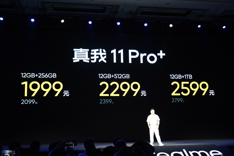 真我11 Pro+一共有12GB+256GB、12GB+512GB、12GB+1TB三个存储版本,首销价分别为1999元、2299元、2599元。