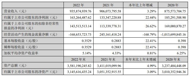 摘要 报告期内实现营业收入9.36亿元,同比增加3.29%;实现归属于上市公司股东的净利润1.63亿元,同比增加22.44%。