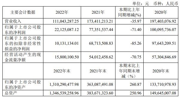 截止2022年12月31日,公司总资产13.47亿元,较上年同期增加250.96%;归属于上市公司股东的净资产13.10亿元,较上年同期增加260.87%。主要系公司首次公开发行股票,股本、资本公积增加所致。