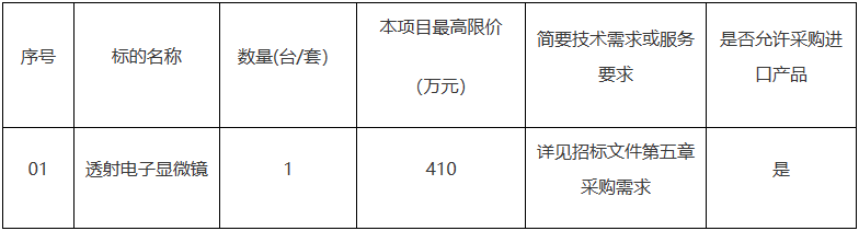 近日,中国农业科学院农产品加工研究所就“加工所显微图像处理公共实验室设备购置项目,预算410万,购置透射电子显微镜1套,项目情况如下。