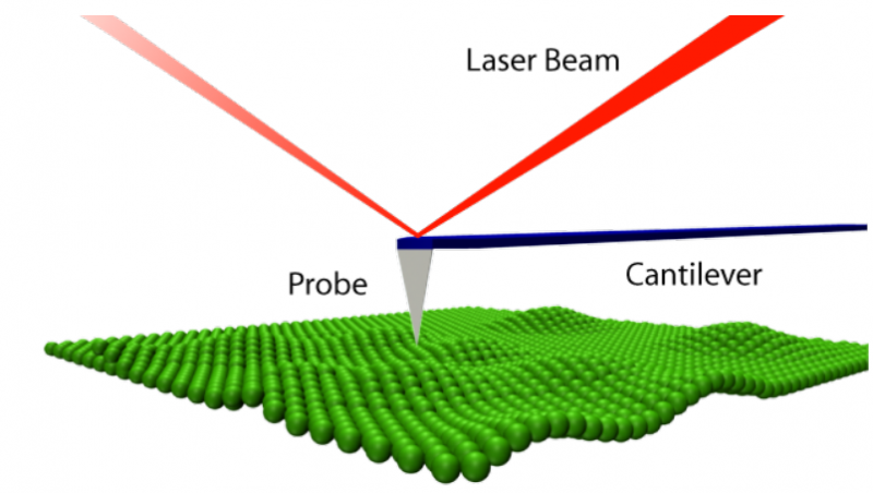 1986年,来自IBM的科学家们开发了一种名为原子力显微镜(AFM)的微型设备。原子力显微镜是一种通过测量作用在一个末端带有尖锐尖端或探针的微型悬臂尖端上的力来绘制原子结构表面的装置。悬臂通常是硅或氮化硅。AFM的最终分辨率低至约10Å。