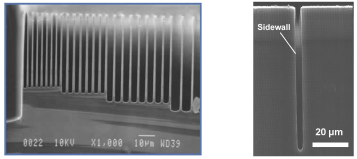 1994年,德国博世公司开发出一种特殊的深层反应离子蚀刻(DRIE)工艺。DRIE是一种高度各向异性的蚀刻工艺,用于在晶圆上开出深而陡的孔和沟槽。它是为需要这些特征的微型设备而开发的,但也用于为动态随机存取存储器(DRAM)的高密度电容器挖掘沟槽。