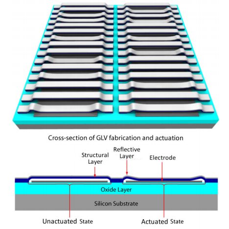 可变形光栅光调制器(GLM)是由O.Solgaard在1992年推出的。它是一种微型光机电系统(MOEMS)。自问世以来,它已被开发用于各种应用,如显示技术、图形印刷、光刻和光通信。