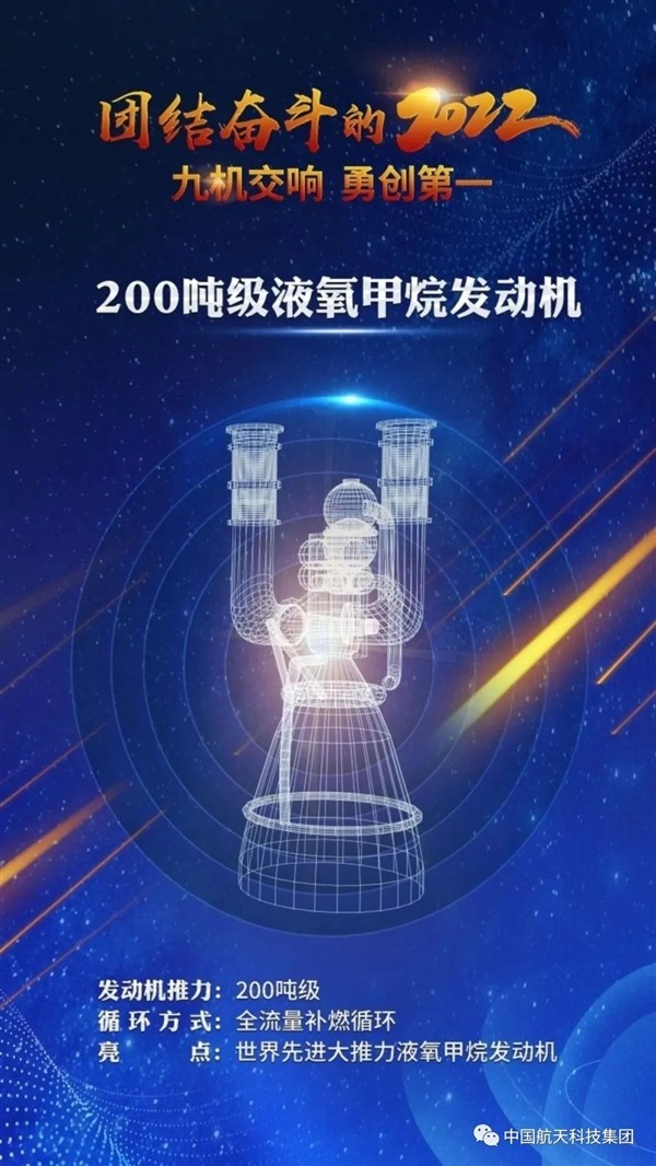 该发动机采用全流量补燃循环方式,是世界先进的大推力液氧甲烷发动机。