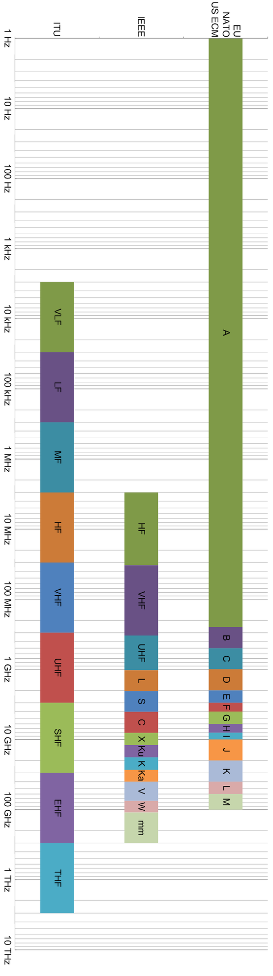 基于这些波段叫法,IEEE(电气和电子工程师协会)进行了规范的统一,如下: