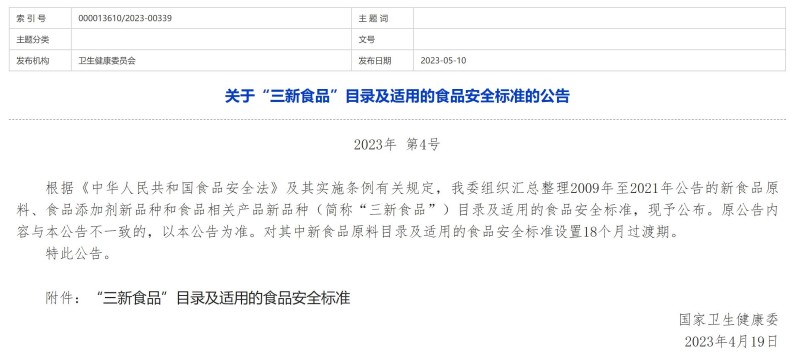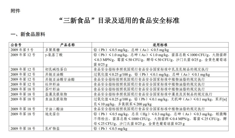 根据《食品安全法》及其实施条例有关规定,国家卫生健康委组织专业技术机构汇总整理了“三新食品”目录及适用的食品安全标准,并于近日重新公布。该目录涉及的新食品原料食品安全指标包括过氧化值、真菌毒素、污染物和微生物限量;种属基原、食用量、食用和使用方法、生产工艺、发酵菌、副产物和溶剂残留限量等仍按照发布时公告执行。