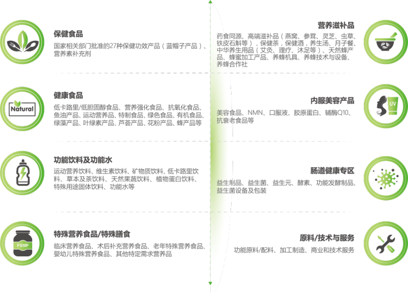 NHNE健康营养展展品范围:制药设备、医药包装、药用辅料、功能食品配料,医药原料,标签,印刷等保健食品:国家相关部门批准的27种保健功效产品(蓝帽子产品)、营养素补充剂健康食品:低卡路里/低胆固醇食品、营养强化食品、抗氧化食品、鱼油产品、运动营养品、特制食品等特殊营养食品/特殊膳食:临床营养食品、术后补充营养食品、老年特殊营养食品、婴幼儿特殊营养食品、其他特定需求营养品、营养滋补品、美容产品、肠道健康专区、蜂产业专区、技术与服务(注册/转让/OEM)定展咨询:(132)(6834)(8040)许多