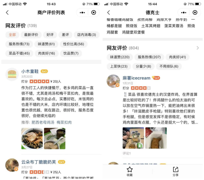 左:小红书,右:大众点评