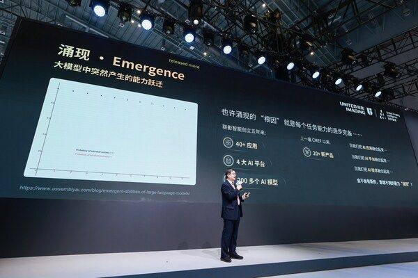 这一概念在联影智能此次CMEF的新品发布会中,也被作为一大关键词进行深入探讨。联影智能首席运营官詹翊强表示,“现阶段AI发生涌现的根因,也许在于单个任务能力的补齐。那么当我们把自身现有的AI应用、平台、技术融合起来,是否会诞生一些新的、意想不到的能力?”