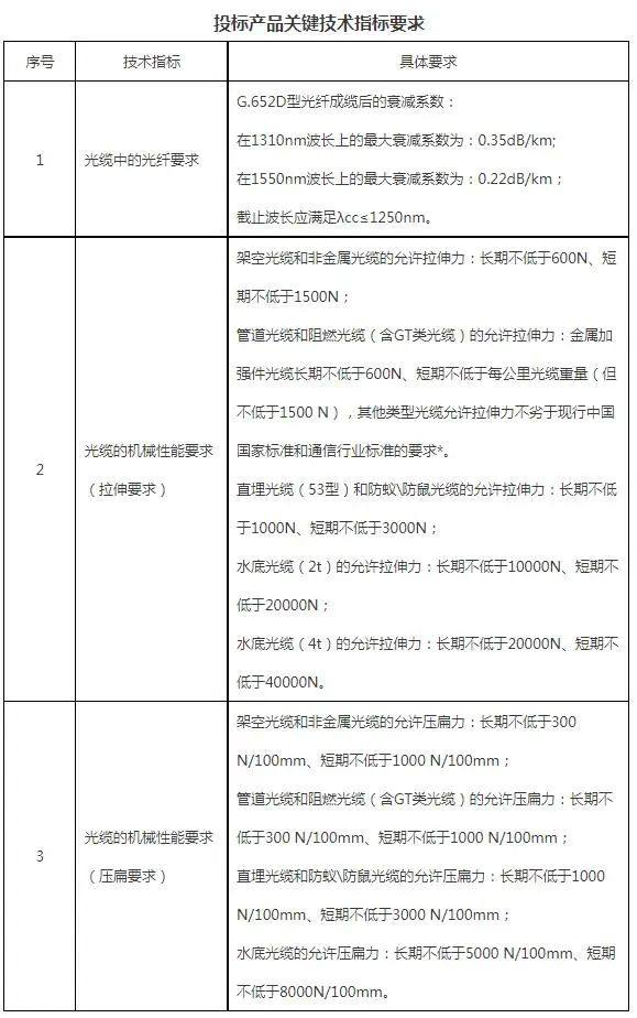 中国电信方面表示,本次采购为中国电信集团有限公司和中国电信股份有限公司及其下属子公司、分公司各工程所需的室外光缆产品(不含一级光缆线路工程建设所需的室外光缆),包括:GYTA、GYTS、GYDTA、GYDXTW等类型的室外光缆。采购总规模为5000万芯公里。