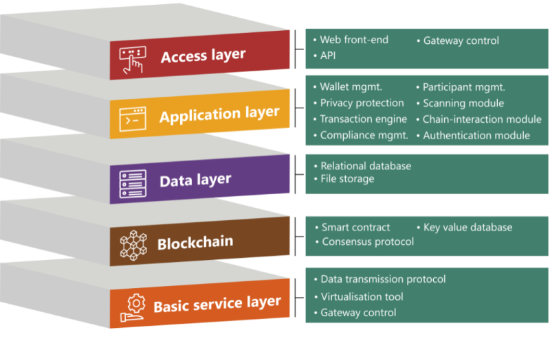 以mBridge为例,该项目开发了一个新的本地区块链,即mBridge账本(mBL),以满足中央银行和商业参与者的需求。mBL的核心是中央银行,它们各自运行一个验证节点,共同操作mBL的共识协议。中央银行的验证节点形成了一个完整、连接的图,每对节点之间都有一个链接。每个中央银行都可以将其国内的商业银行连接到平台上,而每个辖区的商业银行都与连接的中央银行相连,从而与验证节点相连。并且在技术架构上,设置多层结构,从基础服务层到应用层再到权限层,只有将业务要求例如金融体系特别强调的合规需求(AML)加入其中,才能真正为金融机构所用。相比传统法币,CBDC具有更高的跨境支付效率和透明度,通过加入实名认证系统和自动化检测等机制和AML工具, 使用CBDC的合规成本也就更低。每个辖区的商业银行都可以与mBL的验证核心相连,实现数字货币之间的互通。这个过程就像是多个岛屿之间通过桥梁连接在一起,形成了一个大陆,使得数字货币可以在不同国家之间流通、转移和结算。