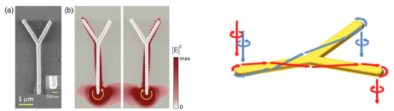 以上理论对于其他金属结构也是适用的,如金属纳米线。接下来,作者基于这种受自旋控制的定向传播,设计了一个具有分支的纳米波导结构,进一步从实验上实现了圆偏振光分选的路由功能。