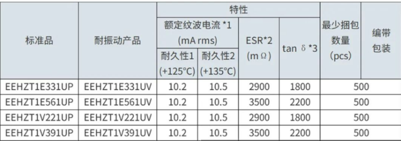 AMEYA360电子元器件IC平台(www.ameya360.com)为您详解:松下导电性聚合物混合铝电解电容器表面贴装型ZTU系列。