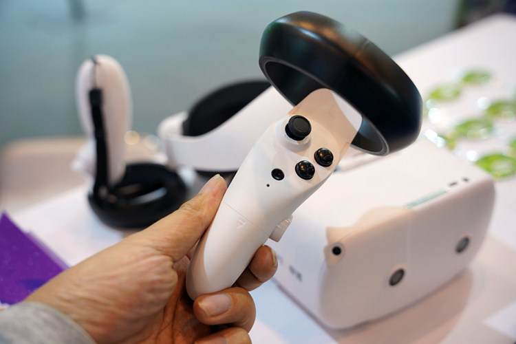 奇遇的手柄同样采用了黑白配色,6DOF定位技术使其能够达到1000Hz的稳定追踪,实现毫秒级急速响应,还原手部细节操作,按键布局也很人性化,手感不错。