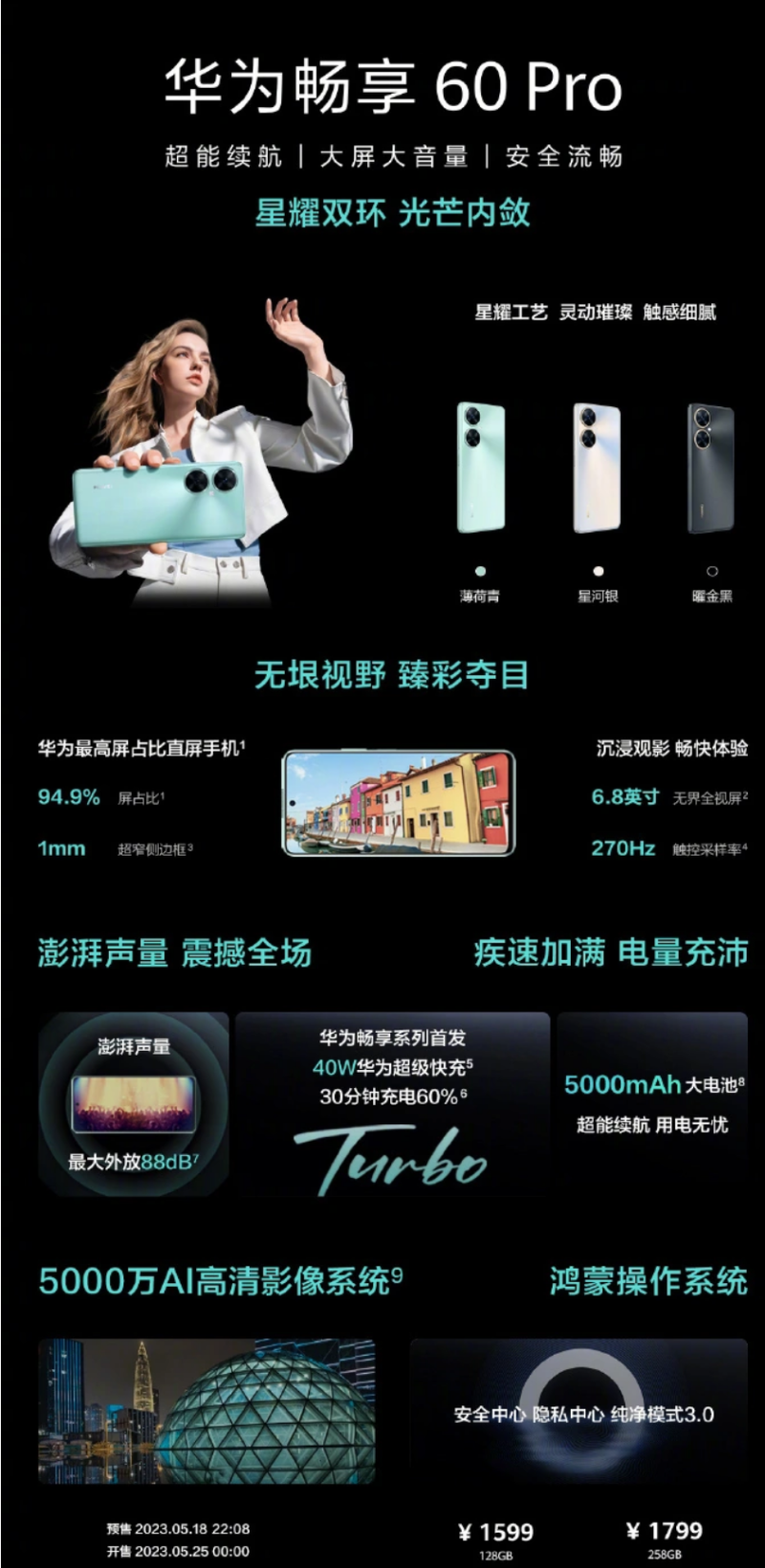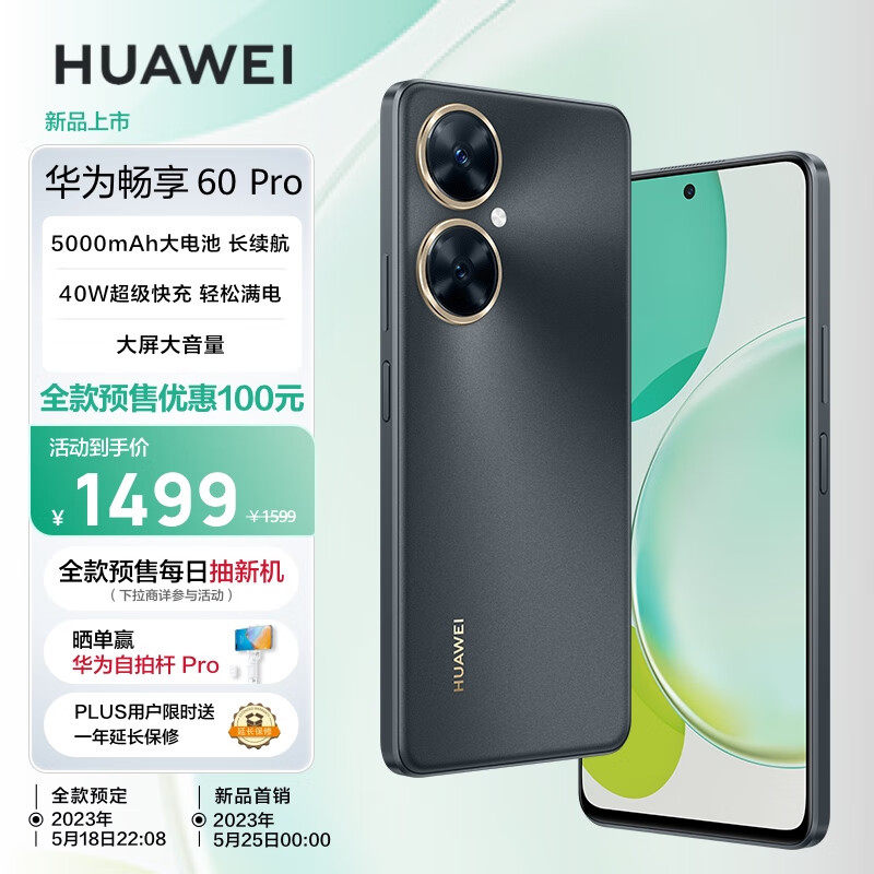 IT之家 5 月 21 日消息,华为畅享 60 Pro 已开启全款预售,全款预售优惠 100 元,5 月 25 日正式开售。