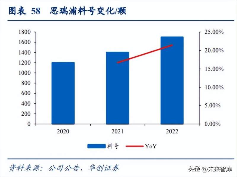 国内模拟 IC 厂商品类扩张速度加快,具有较丰富的技术积累。在料号增速方面,得益 于国内模拟 IC 设计公司的技术、经验的积累以及国产替代带来的资金支持,国内模拟 IC 设计公司持续增加研发投入使得公司品类扩张速度加快。圣邦股份从 2020 年的 3300 余 料号扩张至 2022 年 3800 余种,其扩张速度逐步加快,截至 2022 年,圣邦股份产品品类 扩张至 25 大类;同时,思瑞浦公司料号自 2020 年的 1200 种扩张至 2022 年的 1700 种, 其扩张速度亦在加快,均积累了较为丰富的产品设计经验。