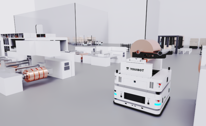 Z公司:优艾智合利用激光SLAM与二维码融合导航技术,帮助其实现物料在人工备料区至基膜涂膜加工区及成品分切暂存区的转运。