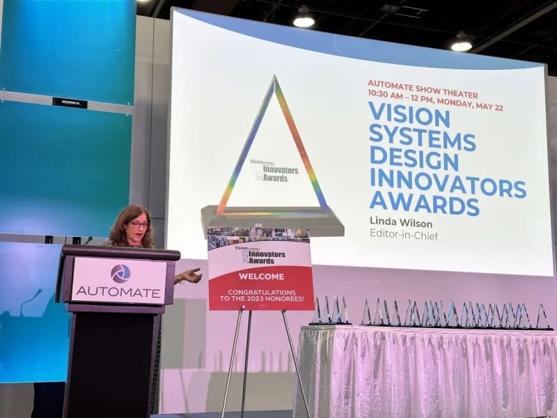 5月22日展会期间,同期举行了2023全球Innovators Award颁奖仪式,维感科技CEO杨洪涛先生应邀出席,并在现场接受了Vision Systems Design的授奖。该奖项面向对视觉和成像行业做出开创性贡献的企业及其产品,以认可其在行业内的成就和价值。