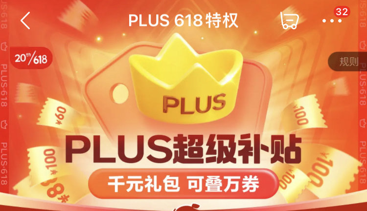 京东 PLUS 会员 618 超级补贴:点此查看。