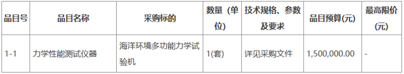 近日,广东省科学院新材料研究所就“广东省科学院新材料研究所海洋环境多功能力学试验机采购项目(项目编号:GZGK23P100A0341Z)”发布公开招标公告,预算150万,购置海洋环境多功能力学试验机1套,项目情况如下。