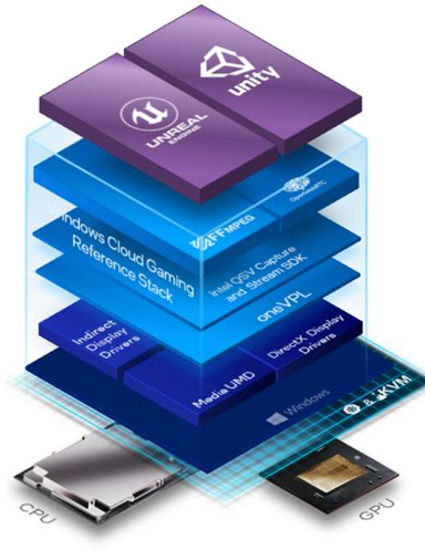 Windows云游戏:英特尔提供了一个面向Windows的云游戏参考堆栈,展示了如何让远程游戏充分利用英特尔Flex系列GPU,包括如何调度和指定单个或多个游戏同时使用单张或多张Flex系列GPU卡,并支持两种虚拟显示(IDD和KMD)。英特尔Flex系列GPU针对DirectX 9、11和12渲染目标捕捉和桌面捕捉进行了优化。