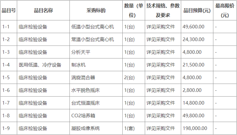 合同包1(CO2培养箱等设备):