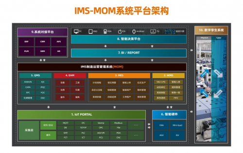 经过层层调研、反复考察,盘古信息从PCB行业的业务难点出发,自主研发了PCB行业数字化解决方案——IMS-MOM制造运营管理系统,MOM将MES制造执行系统、WMS仓库管理系统、EAM企业资产管理系统、QMS质量管理系统、IoT设备联网平台五大系统并列起来,实现统一平台下的解耦与耦合,在不同车间、不同场景中,利用工业互联网构建协同服务于企业全制造流程的实时感知、智能分析、自主决策以及精准执行。