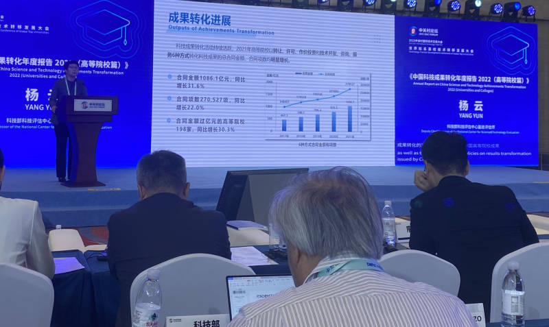 在分享经验的同时也提到当前中国科技成果交易效率仍偏低,成果转化专业人员不足,科技成果转化在部分高校院所考核评价体系中权重偏低,成果转化导向不突出,对中试等中间环节投入不足,限制了科技成果转化的全面铺开。