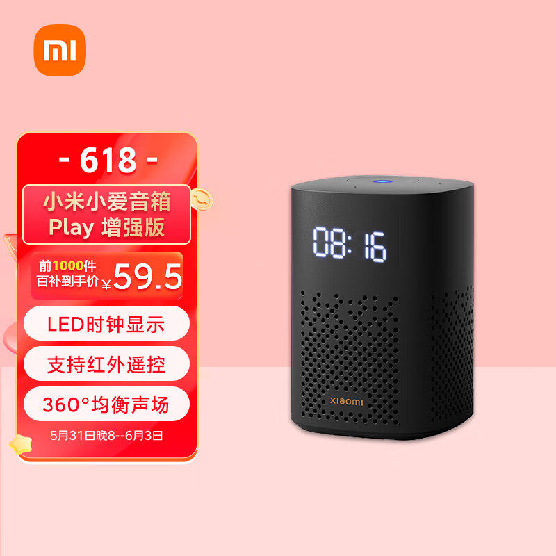 小米小爱音箱 Play 增强版配有 LED 闹钟显示,可遥控 6000+ 品牌智能和传统家电,支持 360 度均衡声场,京东原价 124 元,前一千件百亿补贴到手价 59.5 元。