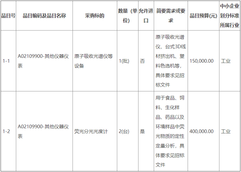 近日,福建师范大学发布公告,计划对原子吸收光谱仪等设备采购项目公开招标,预算金额112.9万,采购原子吸收光谱仪、荧光分光光度计、紫外分光光度计等设备。潜在投标人应在福建省政府采购网免费申请账号在福建省政府采购网上公开信息系统按项目获取采购文件,并于2023年06月19日 08时30分00秒(北京时间)前递交投标文件。