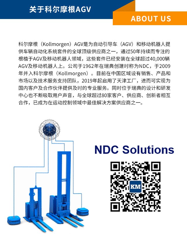 科尔摩根(Kollmorgen)AGV是为自动引导车(AGV)和移动机器人提供车辆自动化系统套件的全球顶级供应商之一,通过50年持续而专注的根植于AGV及移动机器人领域,这些套件已经安装在全球超过40,000辆AGV及移动机器人上。公司于1962年在瑞典创建时称为NDC,于2009年并入科尔摩根(Kollmorgen)。目前在中国区域设有销售、产品和市场以及技术服务支持团队,2019年起启用了天津工厂,进而可实现为国内客户及合作伙伴提供及时的专业服务。同时位于瑞典的设计和研发中心也不断吸取用户声音,与全球超过80家客户、供应商、创新者相互合作,已成为在运动控制领域中最佳解决方案供应商之一。