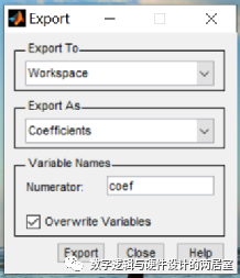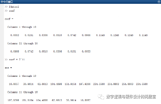 将滤波器参数输出,存到变量 coef 中,如下图所示。