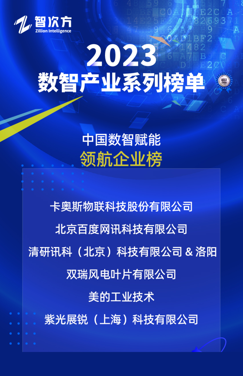 为了给企业提供展示数智化转型成果的舞台,帮助企业通过展示技术创新、产业发展等获得更多的曝光度和影响力,智次方、智次方研究院、物联网智库评选出了2023数智产业系列榜单。分为【中国数智赋能 领航企业榜】、【中国数智转型 标杆企业榜】、【中国工业互联网 领军企业榜】、【中国数智产业 创新产品榜】、【中国数智产业 风云人物榜】。