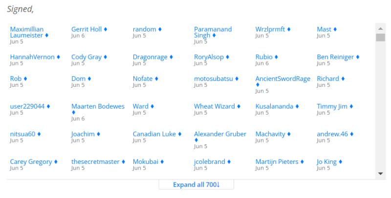 截止目前,这封公开信已收到了超过700位版主的签名支持,并且这一数字仍在持续增长。