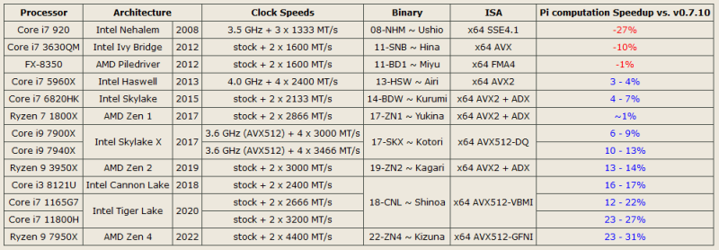 y-cruncher 的作者 Alexander Yee 宣布,即将推出的基准测试版本将对 AVX-512 硬件进行重大提升,尤其是支持 AVX-512 的 AMD Zen 4 内核。