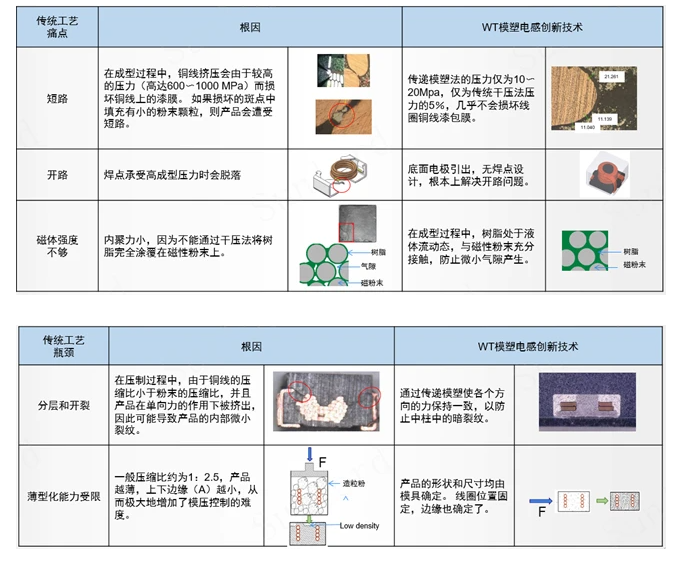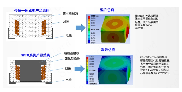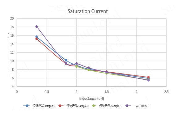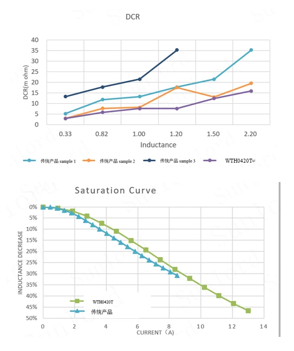 ● 相比较传统的一体成型结构产品,WT系列产品电感具有: