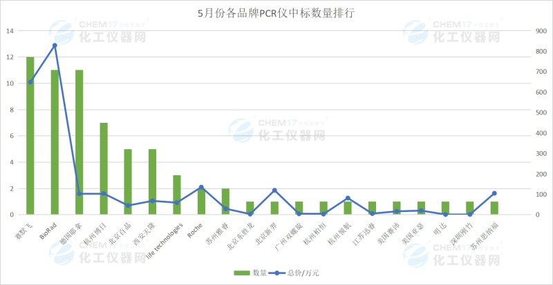 5月份各品牌PCR仪中标数量排行