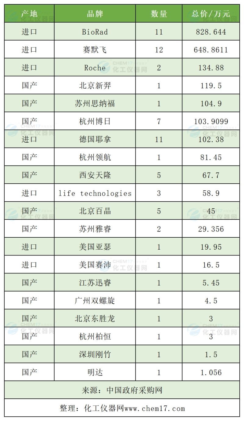 从中标PCR仪产地来看