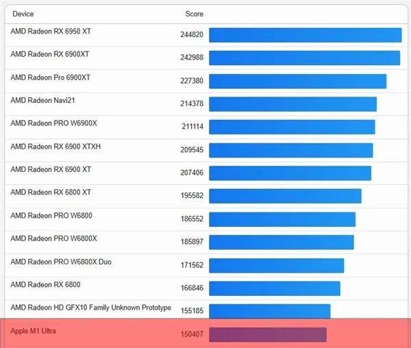 这次的环境是GeekBench 6.1,在苹果自家Metal API下,搭载M2 Ultra(76核GPU)的Mac Studio跑出22万分,比M1 Ultra(64核GPU)的15万分高出46%。