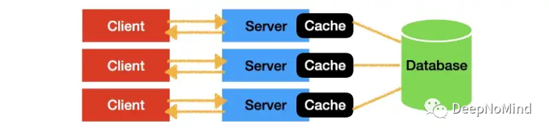 在这种情况下,可以使用单一外部缓存(如上图所示),多个服务器只访问统一的缓存。