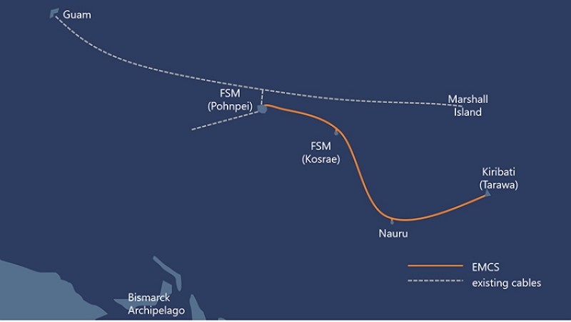 EMCS海缆系统将连接密克罗尼西亚联邦(波纳佩和科斯雷)、基里巴斯(塔拉瓦)和瑙鲁之间的四个岛屿,总长约2250公里,是一条大容量的海缆系统。