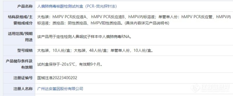 国内首个人偏肺病毒核酸检测试剂盒(PCR-荧光探针法)