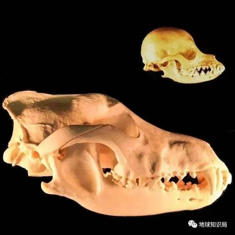 吉娃娃的头骨(上)和灰狼的头骨(下),他俩可是亲兄弟(图:wiki)▼