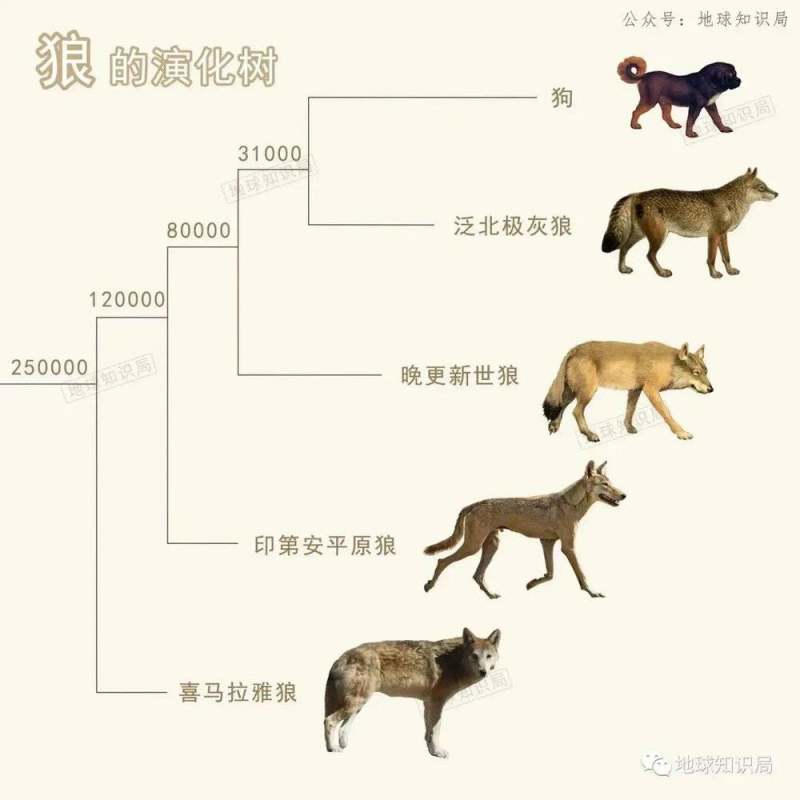 根据遗传学研究,狗的祖先在大约40000年至27000年前与现代灰狼相分离,形成独立的物种。但二者的关系很近,就像是亲兄弟一样。